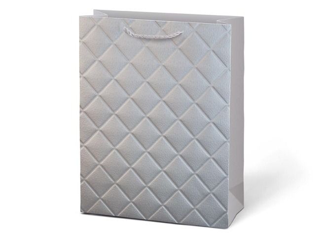 Dárková papírová taška M LUX představuje kvalitní způsob, jak elegantně zabalit dárek bez nutnosti použití balicího papíru. Povrch tašky má jemný reliéfní vzor ve tvaru kosočtverců, který působí decentně a dodává dárku reprezentativní vzhled. Taška je pečlivě zpracovaná a vhodná pro různé typy dárků. Pletená provázková ucha zajišťují pohodlné přenášení. Rozměry: 180 x 230 x 100 mm Motiv: reliéfní kosočtvercový vzor Barva: metalická – zlatá, stříbrná, světle modrá, fialová Uvedená cena je za 1 ks.