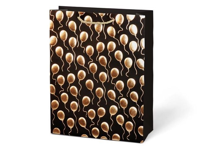 Dárková papírová taška M LUX přináší do balení dárků slavnostní atmosféru. Tmavý podklad zvýrazňuje lesklé motivy svíček a balónků, které působí hravě, ale zároveň elegantně. Každý design je navržen tak, aby podtrhl radostný charakter okamžiku. Taška se hodí pro menší dárky k narozeninám nebo jiným oslavám. Pletené provázkové uši umožňují pohodlné přenášení. Motiv: svíčky, balónky Rozměry: 180 x 230 x 100 mm Barva: černá s metalickým potiskem Uvedená cena je za 1 ks.