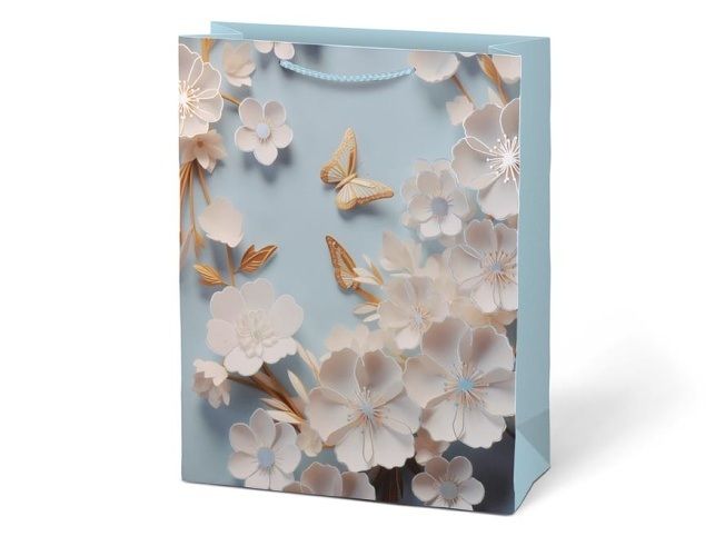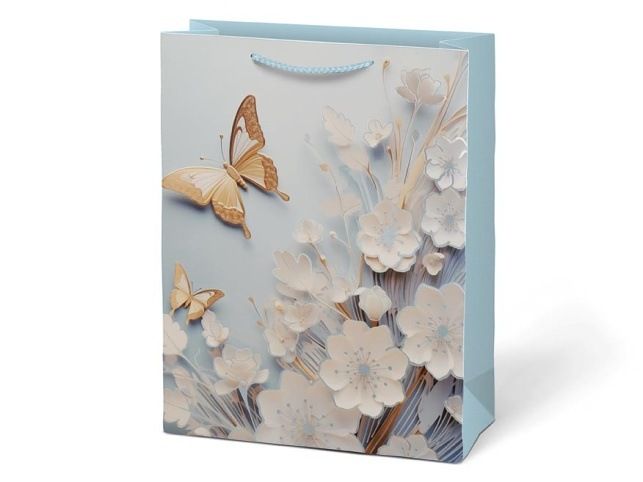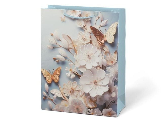 Dárková papírová taška M LUX zaujme elegantním květinovým motivem doplněným o zlaté motýly. Jemné pastelové barvy v kombinaci se zlatavými detaily působí vzdušně a dodávají dárku výjimečný vzhled. Taška podtrhuje výjimečnost okamžiku a dodává dárku jemný, vkusný vzhled. Díky krásnému zpracování působí harmonicky a celkový dojem z dárku je ještě slavnostnější. Motiv: květiny, motýli Rozměry: 180 x 230 x 100 mm Uvedená cena je za 1 ks.