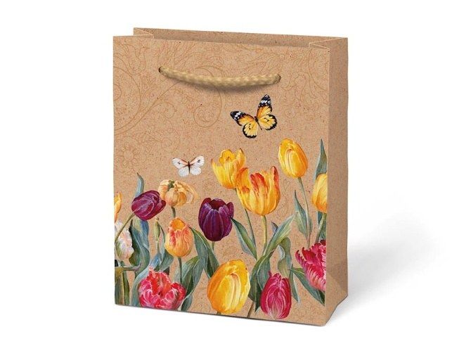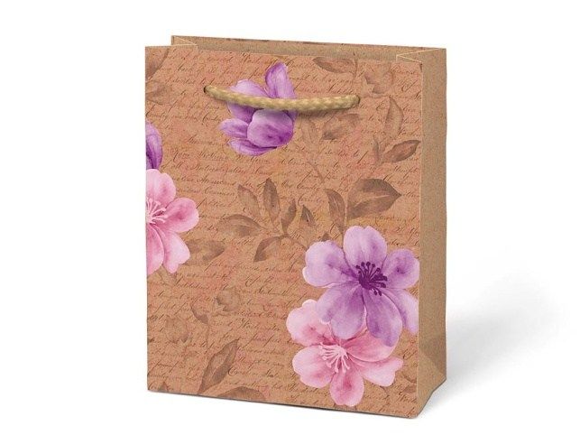 Dárková taška S LUX KRAFT z kraftového papíru s potiskem. Taška má pletená textilní ucha pro snadné nošení a kartičku kam můžete napsat jméno nebo krátké věnování. Pokud nemáte čas balit dárek do dárkového balícího papíru tak právě pro Vás máme široký výběr dárkových tašek. MOTIV: - květy - kolečka - peříčka - tulipány Barva: hnědá/přírodní Materiál: kraftový papír Rozměr: 110 x 135 x 65 mm Uvedená cena je za 1 ks.