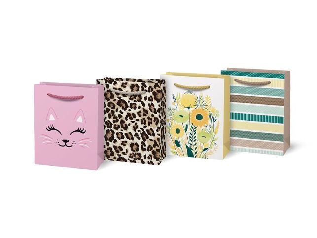 Když i detaily hrají roli! Hravá, něžná, stylová – dárková taška, která umí zaujmout na první pohled. V nabídce najdete mix motivů: roztomilou kočičí tvář, divoký leopardí vzor, zářivé květiny i moderní proužky. Každý z nich přinese vašemu dárku jinou náladu, ale vždy zaručí, že předání bude výjimečné. Díky pevnému papíru a šňůrkovému uchu je nejen krásná, ale i praktická – prostě radost v každém detailu. Rozměr: 110 x 137 x 62 mm Motiv: kočičí, leopardí, květinový, proužkovaný Uvedená cena je za 1 ks.