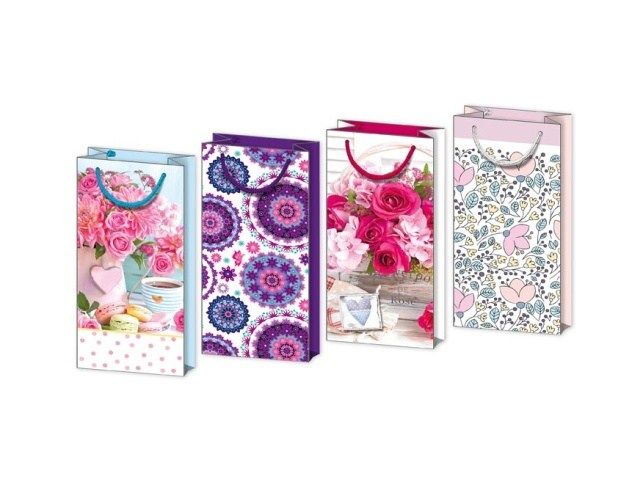 Dárková taška s motivy květin a ornamentů - Každý dárek musí být v něčem zabalený. Pokud nemáte čas balit ho do balicího papíru, máme pro Vás na výběr nejrůznější dárkové tašky. Taška má pevné ucho pro snadné přenášení a štítek pro vepsání jména či přání. Povrchová úprava: Lak Gramáž papíru: 157g Uvedená cena je za 1 ks.