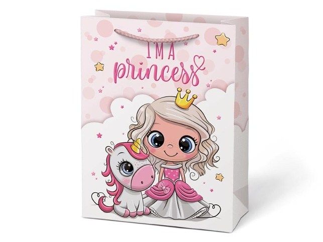 Papírová dárková taška. Každý dárek musí být v něčem zabalený. Pokud nemáte čas balit ho do balicího papíru, máme pro Vás na výběr nejrůznější dárkové tašky. MOTIVY: pro holky, princezna, mořská panna, koťátko Taška má pevné ucho pro snadné přenášení a štítek pro vepsání jména či přání. Uvedená cena je za 1 ks.