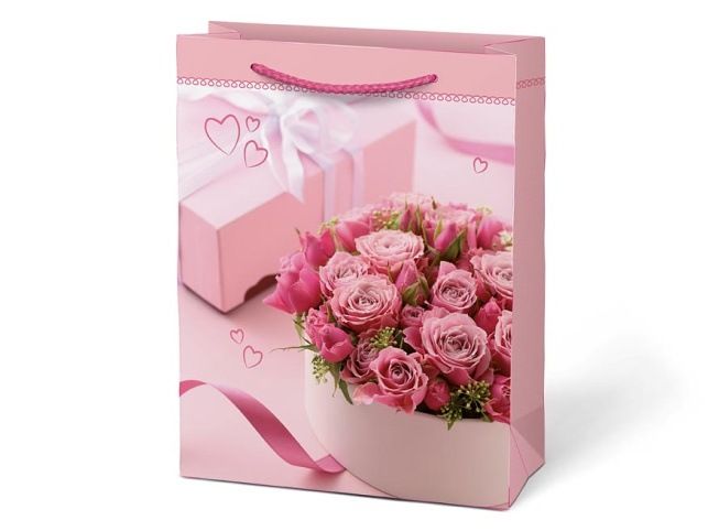 Papírová dárková taška. Každý dárek musí být v něčem zabalený. Pokud nemáte čas balit ho do balicího papíru, máme pro Vás na výběr nejrůznější dárkové tašky. MOTIV: kytice růží Taška má pevné ucho pro snadné přenášení a štítek pro vepsání jména či přání. Uvedená cena je za 1 ks.