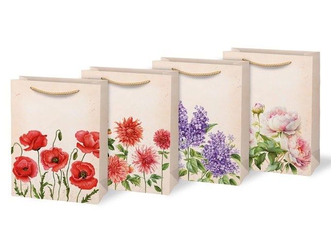 Krásná dárková taška T4 s potiskem. Taška je opatřena pevným uchem pro snadné nošení a kartičkou kam můžete napsat jméno nebo krátké věnování. Pokud nemáte čas balit dárek do dárkového balícího papíru tak právě pro Vás máme široký výběr dárkových tašek. MOTIV - šeřík - jiřiny - vlčí mák - pivoňky Rozměr: 190 x 250 x 90 mm Uvedená cena je za 1 ks.