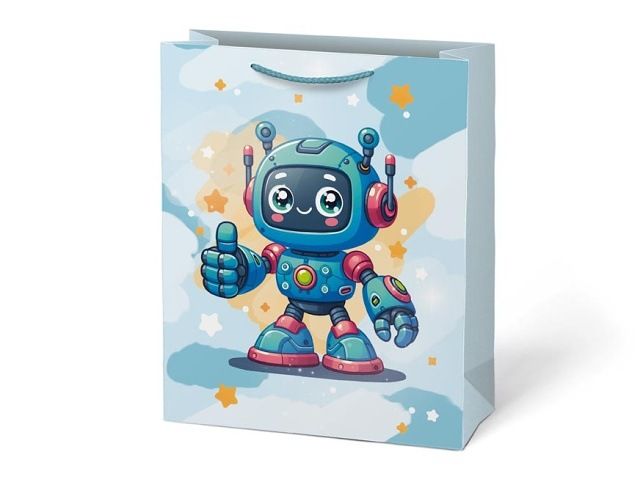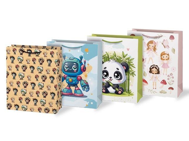 Dárková papírová taška T5 s dětským motivem ve čtyřech různých designech. Je ideální pro předání dárku na oslavě narozenin, vysvědčení nebo jiné významné události. Tato dárková taška zaujme svým vzhledem a zároveň potěší každé dítě. Takto zabalený dárek udělá radost a vytvoří nezapomenutelný zážitek. Pohodlná ucha jsou z pevného materiálu, která zajišťují snadné přenášení. Motiv: mix dětských motivů Rozměr: 260 x 320 x 138 mm Uvedená cena je za 1 ks.