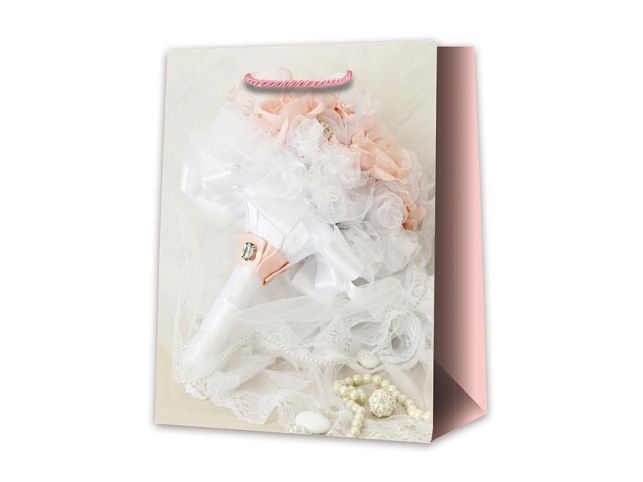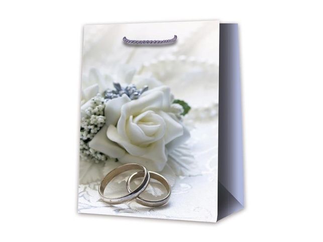 Dárková papírová taška T5 se svatebním motivem. Ideální pro reprezentativní předání svatebního daru. Dárkové tašky jsou skvělé na dárky, které lze jen těžko zabalit do balícího papíru. Velmi praktické jsou také pro ty, co dárky neradi balí nebo to moc neumí a nebyli by spokojeni se svým výsledkem. Motiv: svatební Rozměr: 265 x 325 x 135 mm Uvedená cena je za 1 ks.