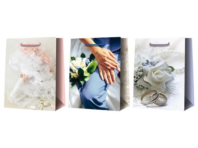 Dárková papírová taška T5 se svatebním motivem. Ideální pro reprezentativní předání svatebního daru. Dárkové tašky jsou skvělé na dárky, které lze jen těžko zabalit do balícího papíru. Velmi praktické jsou také pro ty, co dárky neradi balí nebo to moc neumí a nebyli by spokojeni se svým výsledkem. Motiv: svatební Rozměr: 265 x 325 x 135 mm Uvedená cena je za 1 ks.