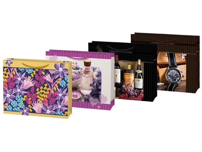 Papírová dárková taška. Každý dárek musí být v něčem zabalený. Pokud nemáte čas balit ho do balicího papíru, máme pro Vás na výběr nejrůznější dárkové tašky. MOTIVY: - víno - květy Taška má pevné ucho pro snadné přenášení a štítek pro vepsání jména či přání. Uvedená cena je za 1 ks.