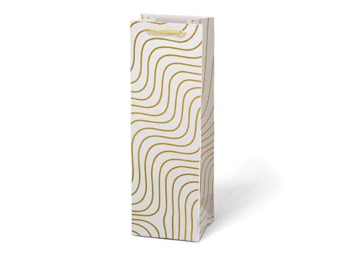 Dárková papírová taška se zlatým motivem vhodná na láhev vína nebo jiný alkohol. Darujte láhev v patřičné dárkové podobě