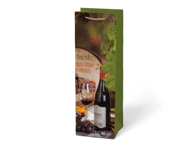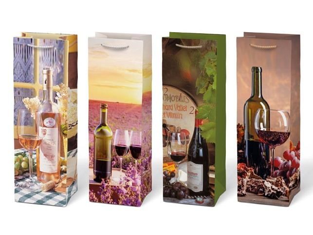 Dárková papírová taška T12 na víno nebo jinou lahvinku. Taška je opatřena pevným uchem pro snadné nošení. Pokud nemáte čas balit dárek do dárkového balícího papíru tak právě pro Vás máme široký výběr dárkových tašek. Motiv: víno Rozměr: 120 x 360 x 100 mm Uvedená cena je za 1 ks.