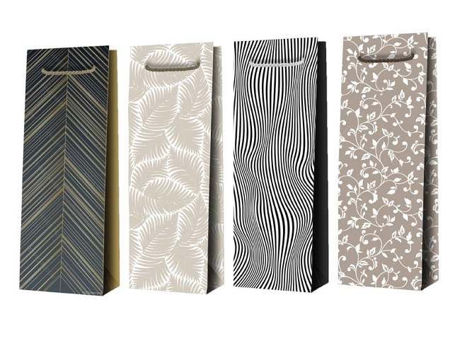 Dárková, papírová taška T12 s mixem motivů na víno nebo jinou lahvinku. Krásný design zaručí spokojenost obdarovaného. Taška je opatřena pevným uchem pro snadné nošení a kartičkou kam můžete napsat jméno nebo krátké věnování. Motiv: mix motivů Rozměr: 130 x 360 x 85 mm Uvedená cena je za 1 ks.