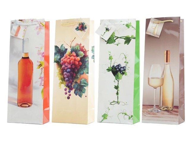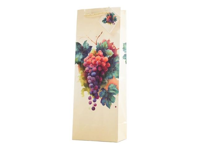 Papírová, dárková taška T12 s originálním designem na víno. Taška je opatřena pevným uchem pro snadné nošení a kartičkou kam můžete napsat jméno nebo krátké věnování. MOTIV: - víno, Vinná réva Rozměr: 130 x 360 x 85 mm Uvedená cena je za 1 ks.