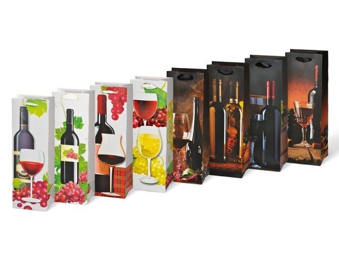 Dárková papírová taška vhodná na láhev vína. Darujte láhev v patřičné dárkové podobě