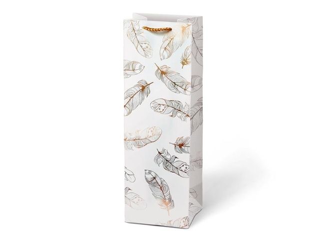 Dárková, papírová taška T12 s mixem motivů na víno nebo jinou lahvinku. Taška je opatřena pevným uchem pro snadné nošení a kartičkou kam můžete napsat jméno nebo krátké věnování. Batva: bílá, černá Motiv: peříčka, rostliny, květiny, vážky Rozměr: 125 x 350 x 90 mm Uvedená cena je za 1 ks.