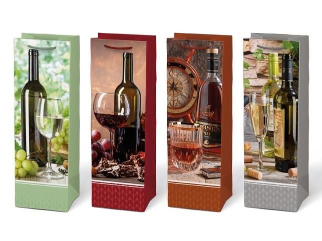 Dárková papírová taška T12 v mixu motivů, každý s elegantním a atraktivním designem. Je vhodná pro různé druhy lahví, nejen pro víno. Lze ji použít i pro likéry, oleje, nebo jiné nápoje v lahvích. Tato stylová taška je opatřena pevným uchem pro snadné a pohodlné nošení. Použití dárkové tašky eliminuje potřebu složitého balení. Darujte lahev originálně a elegantně. Motiv: mix motivů Rozměr: 120 x 360 x 100 mm Uvedená cena je za 1 ks.