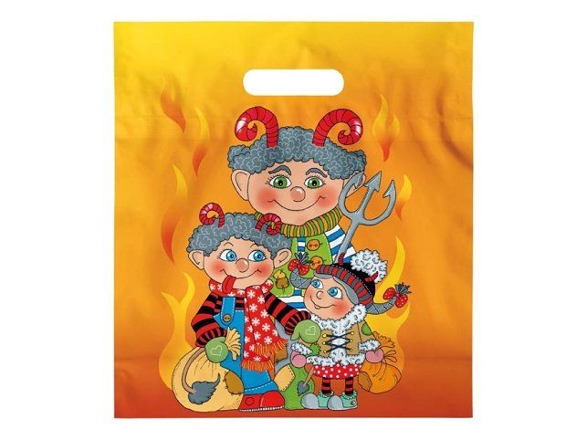 Igelitová taška s průhmatem v Mikulášském motivu. Na tašce je obrázek tří čertů. Rozměr: 29,5x32x8 Materiál: PE Uvedená cena je za 1 ks. Všech 100 ks je balených v sáčku.