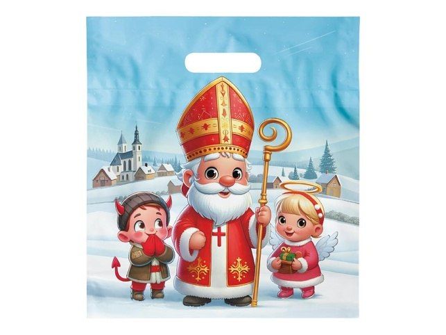 Igelitová taška s průhmatem a barevným mikulášským motivem. Je ideální pro různé typy dárků, od malých sladkostí a hraček až po větší předměty. Na tašce je obrázek Mikuláše, anděla a čerta. Taška je vybavena průhmatem, což je otvor v horní části tašky, který slouží jako rukojeť. Tento průhmat umožňuje snadné a pohodlné přenášení tašky. Díky pevnému plastovému materiálu je taška odolná proti roztržení a vlhkosti, čímž zajišťuje, že dárky uvnitř zůstanou v bezpečí a suchu. Barva : bílá Materiál: PE Motiv : mikulášský Rozměr: 290 x 320 x 80 mm Praktické balení: odtrhávací blok Uvedená cena je za 1 ks.