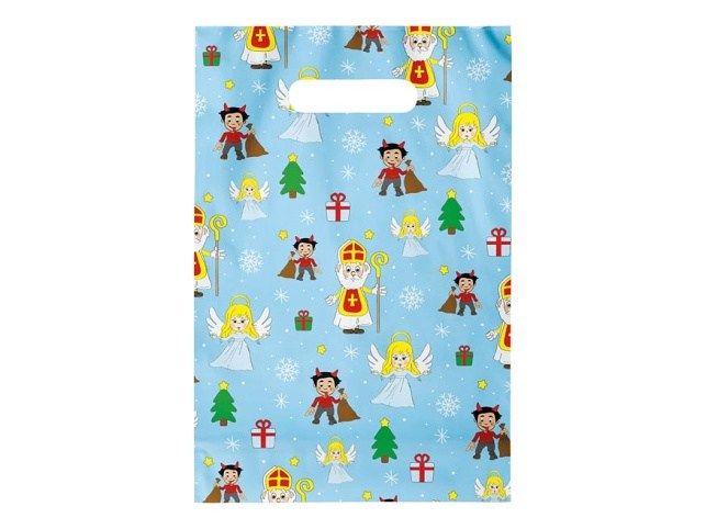 Igelitová taška s průhmatem v Mikulášském motivu. Na tašce je obrázek Mikuláše, anděla, čerta a vánočních dárků. Ideální na zabalení dobrot, sladkostí a na další mikulášskou nadílku pro děti. Materiál: PE Praktické balení: odtrhávací blok Rozměr: 200 x 300 x 80 Uvedená cena je za 1 ks.