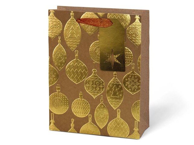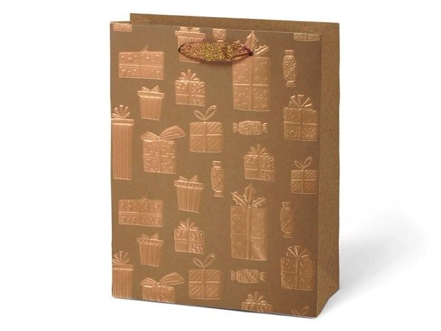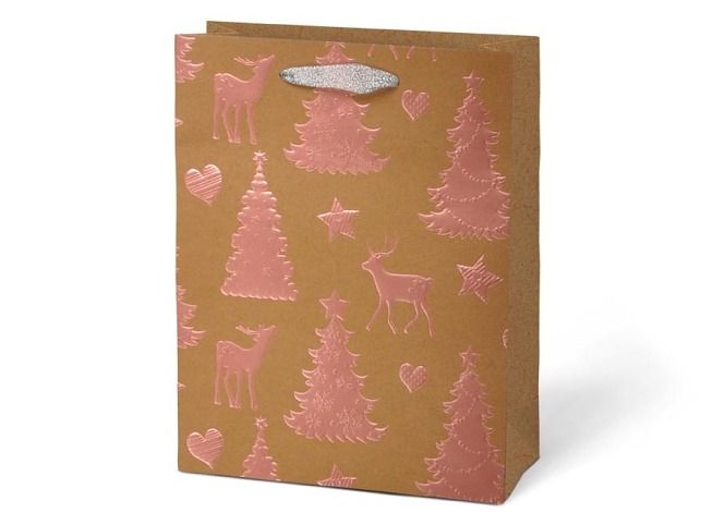 Vánoční papírová dárková taška L LUX KRAF s vánočními motivy je skvělou volbou pro každého, kdo hledá stylový a praktický způsob balení dárků. Je vyrobena z pevného kraftového papíru, který zaručuje nejen vysokou odolnost, ale také atraktivní vzhled. Taška je vybavena textilními uchy pro pohodlné přenášení a obsahuje kartičku, na kterou můžete napsat jméno obdarovaného nebo krátké přání. Motiv: vánoční motivy Barva: hnědá/přírodní Materiál: kraftový papír Rozměr: 260 x 320 x 120 mm Uvedená cena je za 1 ks.