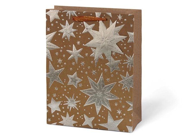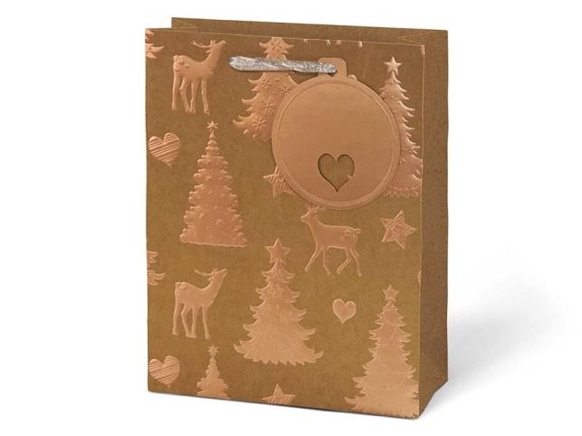 Vánoční papírová dárková taška L LUX KRAF s vánočními motivy je skvělou volbou pro každého, kdo hledá stylový a praktický způsob balení dárků. Je vyrobena z pevného kraftového papíru, který zaručuje nejen vysokou odolnost, ale také atraktivní vzhled. Taška je vybavena textilními uchy pro pohodlné přenášení a obsahuje kartičku, na kterou můžete napsat jméno obdarovaného nebo krátké přání. Motiv: vánoční motivy Barva: hnědá/přírodní Materiál: kraftový papír Rozměr: 260 x 320 x 120 mm Uvedená cena je za 1 ks.