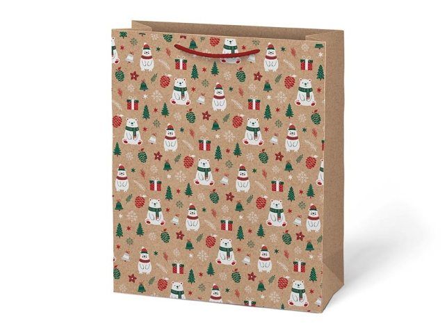 Vánoční dárková taška MFP L LUX KRAFT - luxusní papírová taška na dárky Dodejte svým vánočním dárkům nádech elegance a originality s luxusní vánoční papírovou dárkovou taškou MFP L LUX KRAFT. Tato pevná a stylová kraftová taška je ideální pro rychlé a krásné balení vánočních dárků. Vyniká nejen svou praktickou velikostí, ale také unikátním přírodním vzhledem, který v kombinaci s barevnými vánočními motivy působí útulně, moderně a zároveň ekologicky. Motiv: vánoční Barva: hnědá / přírodní Rozměry: 260 × 320 × 138 mm Uvedená cena je za 1 ks.