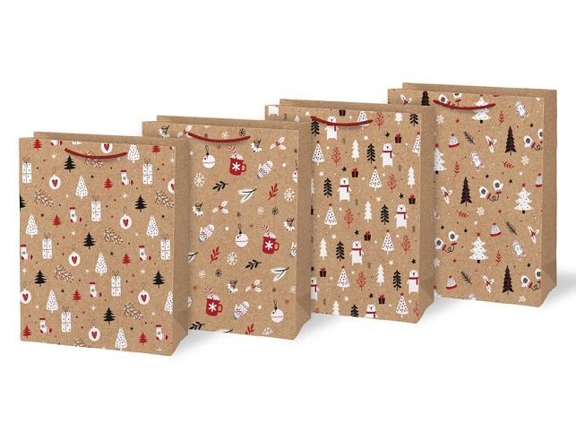 Vánoční dárková papírová taška L LUX KRAFT. Je ideální na předání dárků, a velkým pomocníkem když je těžké dárek zabalit do dárkového balicího papíru. Taška je opatřena pevným uchem. Motiv: mix vánočních motivů Rozměr: 260 x 320 x 138 mm Uvedená cena je za 1 ks.