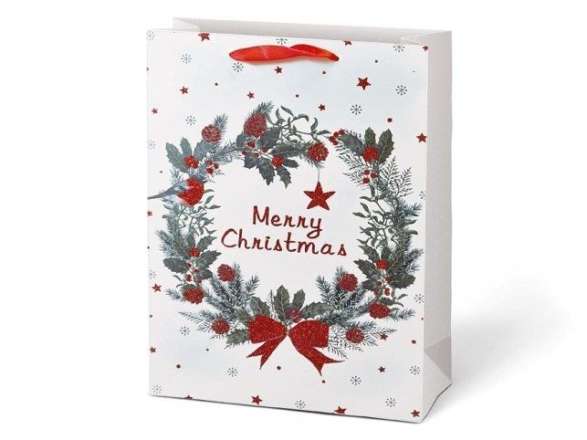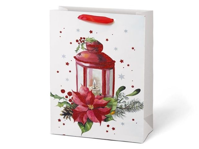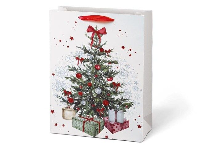 Vánoční, dárková, papírová taška L LUX je ideální na předání dárků, a velkým pomocníkem když je těžké dárek zabalit do dárkového balicího papíru. Taška je opatřena pevným uchem. Barva: bílá Motiv: mix vánočních motivů Rozměr: 225 x 335 x 100 mm Uvedená cena je za 1 ks.