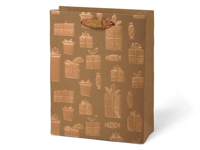 Vánoční papírová dárková taška M LUX KRAF s vánočními motivy je skvělou volbou pro každého, kdo hledá stylový a praktický způsob balení dárků. Je vyrobena z pevného kraftového papíru, který zaručuje nejen vysokou odolnost, ale také atraktivní vzhled. Taška je vybavena textilními uchy pro pohodlné přenášení a obsahuje kartičku, na kterou můžete napsat jméno obdarovaného nebo krátké přání. Motiv: vánoční motivy Barva: hnědá/přírodní Materiál: kraftový papír Rozměr: 180 x 230 x 100 mm Uvedená cena je za 1 ks.