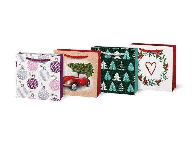Vánoční dárková papírová taška, je ideální na předání dárků, které je těžké zabalit do dárkového balícího papíru. Taška je opatřena pevným uchem. Mix vánočních motivů.