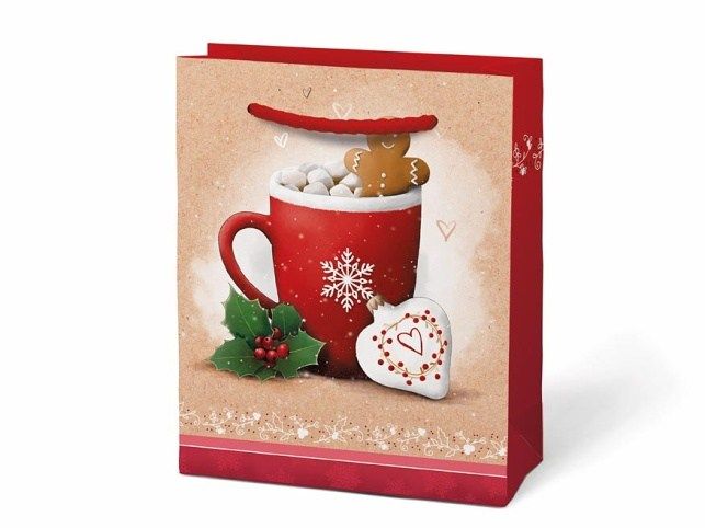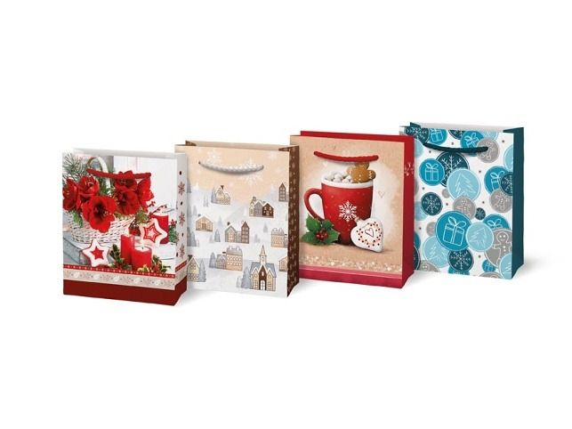 Vánoční dárková papírová taška, je ideální na předání dárků, které je těžké zabalit do dárkového balícího papíru. Taška je opatřena pevným uchem. Mix vánočních motivů.