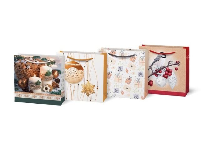 Vánoční dárková papírová taška, je ideální na předání dárků, které je těžké zabalit do dárkového balícího papíru. Taška je opatřena pevným uchem. Mix vánočních motivů.