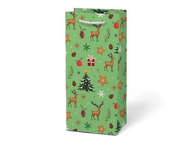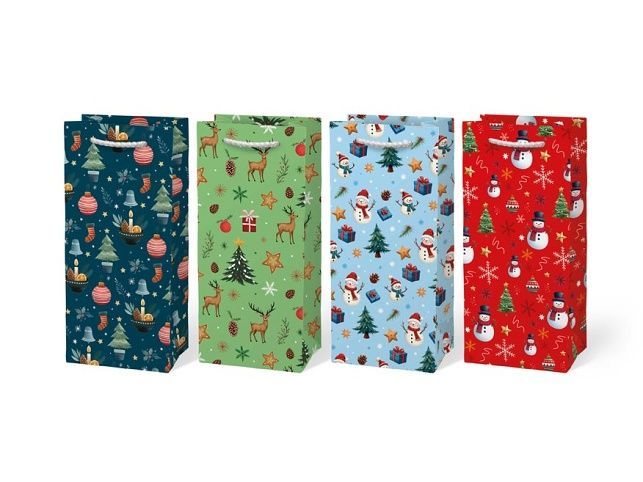 Vánoční dárková taška MFP T3 - stylové balení dárků bez stresu Elegantní a praktická vánoční papírová dárková taška T3 od značky MFP je perfektním řešením pro každého, kdo chce darovat dárek originálně a bez zdlouhavého balení. Barevné motivy se soby, sněhuláky, stromečky a ozdobami vytvářejí kouzelnou vánoční atmosféru a dodají vašemu překvapení tu pravou sváteční jiskru. Motiv: vánoční Rozměry: 100 × 220 × 55 mm Barva: tmavě zelená, světle zelená, světle modrá, červená Uvedená cena je za 1 ks.