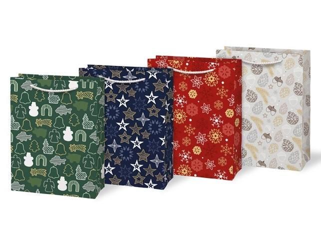 Vánoční dárková papírová taška, je ideální na předání dárků, a velkým pomocníkem když je těžké dárek zabalit do dárkového balicího papíru. Taška je opatřena pevným uchem. Mix vánočních motivů. Uvedená cena je za 1ks.