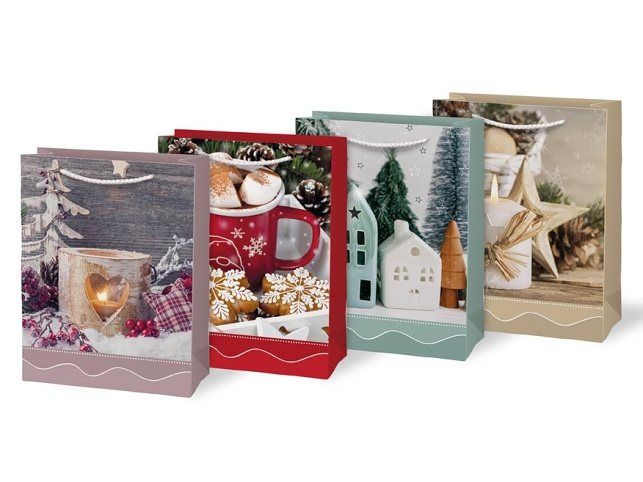 Vánoční dárková papírová taška, je ideální na předání dárků, a velkým pomocníkem když je těžké dárek zabalit do dárkového balicího papíru. Taška je opatřena pevným uchem. Mix vánočních motivů. Uvedená cena je za 1ks.