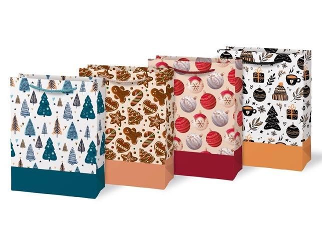 Vánoční dárková papírová taška T4 s vánočními motivy je dokonalým spojením elegance a praktičnosti.Taška je vhodná na balení všech druhů dárků, od malých překvapení po větší předměty, a přidává jim kouzlo sváteční atmosféry. Je skutečně nepostradatelným pomocníkem, když se balení dárku do klasického balicího papíru zdá být příliš obtížné. Její robustní ucha zajišťují pohodlné a bezpečné přenášení. Rozměr: 190 x 250 x 90 mm Motiv: vánoční stromečky, perníčky, vánoční koule, mix vánoční motivů Uvedená cena je za 1 ks.