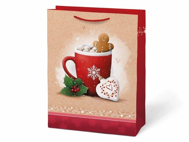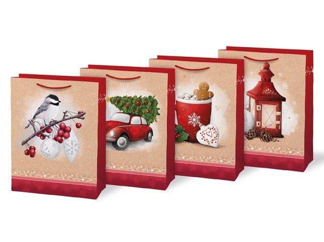 Vánoční dárková papírová taška, je ideální na předání dárků, které je těžké zabalit do dárkového balícího papíru. Taška je opatřena pevným uchem. Mix vánočních motivů.
