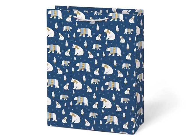 Vánoční dárková papírová taška T5 s motivem ledních medvědů a stromečků na tmavě modrém podkladu. Taška má pletená textilní ucha a kartičku kam můžete napsat jméno nebo krátké věnování. Dárkové tašky jsou skvělé na dárky, které lze jen těžko zabalit do balícího papíru. Velmi praktické jsou také pro ty, co dárky neradi balí nebo to moc neumí a nebyli by spokojeni se svým výsledkem. Barva: tmavě modrá Rozměr: 260 x 320 x 138 mm Motiv: lední medvědi, stomečky Uvedená cena je za 1 ks.