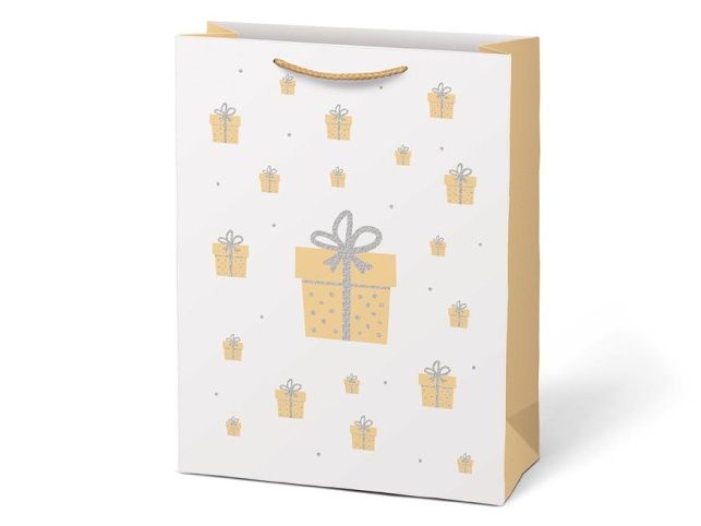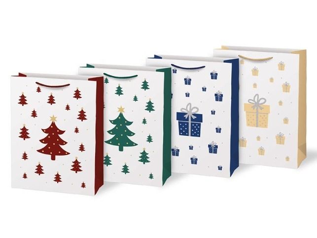 Vánoční dárková papírová taška T5. Je ideální na předání dárků, a velkým pomocníkem když je těžké dárek zabalit do dárkového balicího papíru. Taška je opatřena pevným uchem. MOTIV: - vánoční stromeček - dárek Rozměr: 260 x 320 x 138 mm Uvedená cena je za 1 ks.