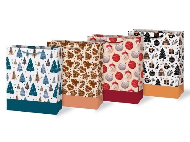 Vánoční dárková papírová taška T5 s vánočními motivy je dokonalým spojením elegance a praktičnosti. Taška je vhodná na balení všech druhů dárků, od malých překvapení po větší předměty, a přidává jim kouzlo sváteční atmosféry. Je skutečně nepostradatelným pomocníkem, když se balení dárku do klasického balicího papíru zdá být příliš obtížné. Její robustní ucha zajišťují pohodlné a bezpečné přenášení. Rozměr: 260 x 320 x 138 mm Motiv: vánoční stromečky, perníčky, vánoční koule, mix vánoční motivů Uvedená cena je za 1 ks.