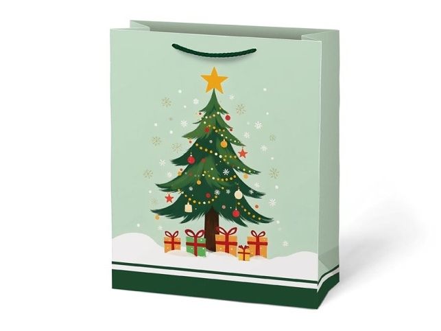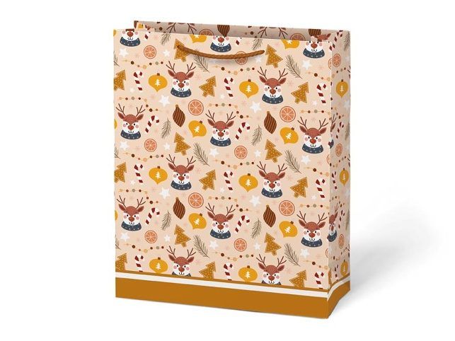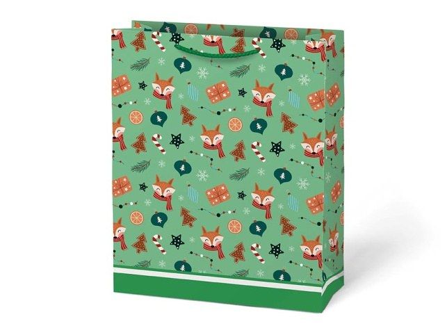 Vánoční dárková taška MFP T5 – veselé sváteční motivy Barevná a prostorná vánoční dárková papírová taška MFP T5 je skvělým pomocníkem, pokud chcete rychle a stylově zabalit větší vánoční dárky. Motivy s ozdobeným stromečkem, usměvavým sněhulákem, sobíky i liškami přinesou do vašeho obdarování hravost a kouzelnou atmosféru Vánoc. Rozměry: 260 × 320 × 138 mm Motiv: vánoční stromeček, sob, sněhulák, liška Uvedená cena je za 1 ks.