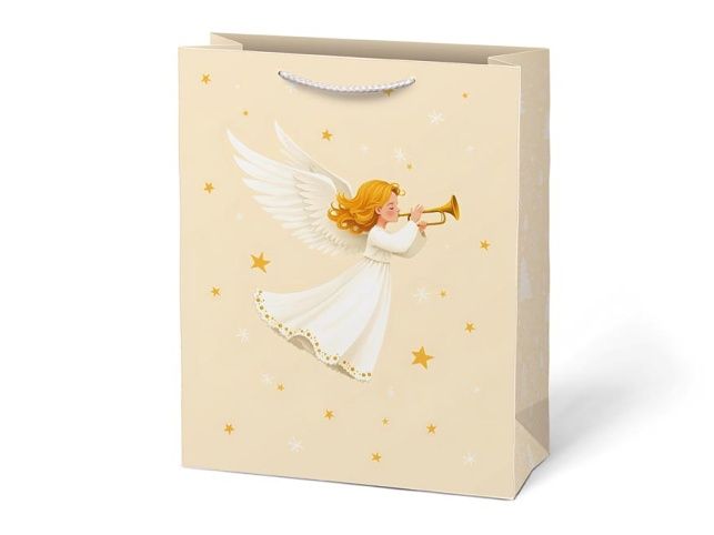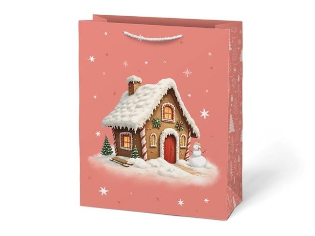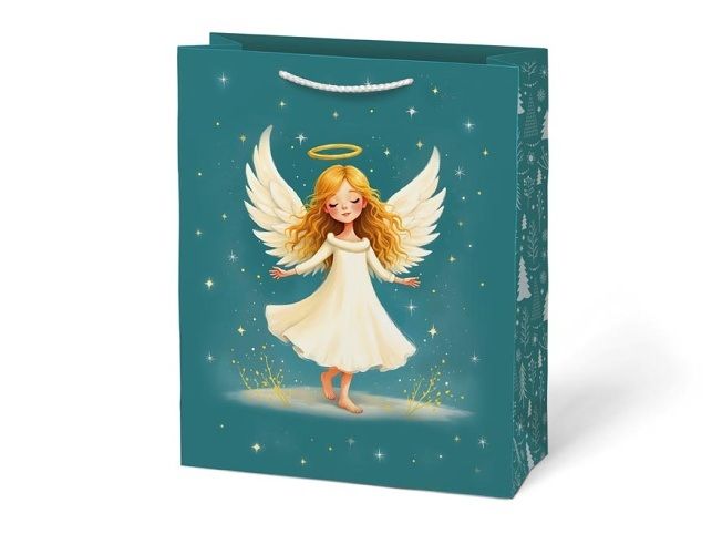 Vánoční papírová taška MFP T5 – andělská a pohádková Nechte dárky vyniknout v prostorné dárkové vánoční papírové tašce MFP T5. Pastelové motivy s anděly, perníkovou chaloupkou a vánočními ozdobami dodají balení něhu i kouzlo Vánoc. Díky většímu rozměru pohodlně pojme i větší překvapení, a přitom vypadá elegantně. Rozměry: 190 × 250 × 90 mm Barva: petrolejová, lososová, světle zelená, béžová Motiv: vánoční – andělé, zimní chaloupka, ozdoby a sváteční dekorace Uvedená cena je za 1 ks.