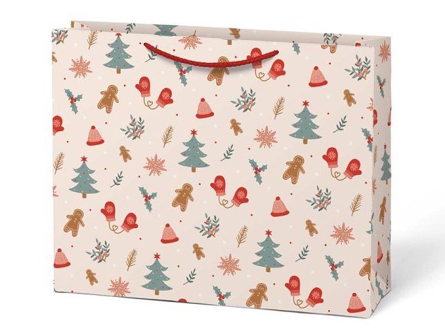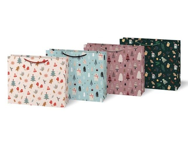 Vánoční dárková papírová taška T8 je ideální na předání dárků, a velkým pomocníkem když je těžké dárek zabalit do dárkového balicího papíru. Taška je opatřena pevným uchem. Motiv: mix vánočních motivů Rozměr: 325 x 265 x 135 mm Uvedená cena je za 1 ks.