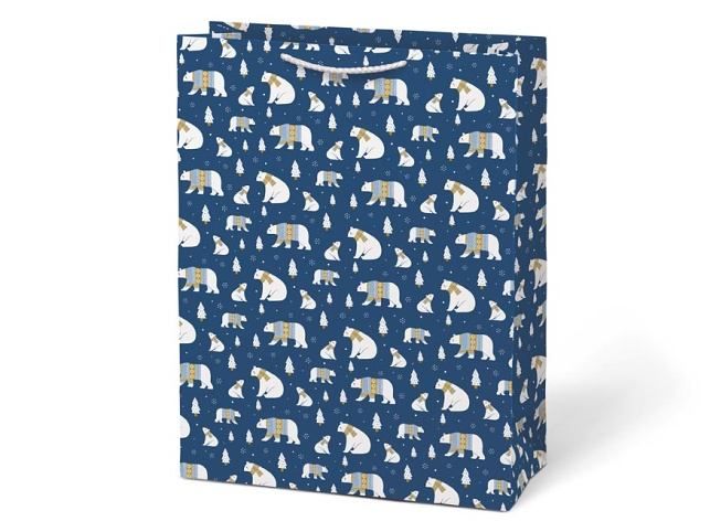 Vánoční dárková papírová taška T10. Je ideální na předání dárků, a velkým pomocníkem když je těžké dárek zabalit do dárkového balicího papíru. Taška je opatřena pevným uchem. MOTIV: - lišky - tučňáci - sněhuláci - lední medvědi Rozměr: 330 x 450 x 150 mm Uvedená cena je za 1 ks.