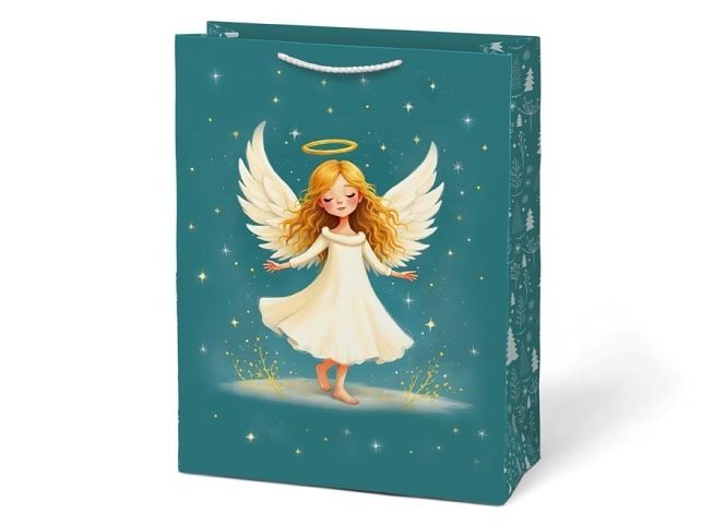 MFP vánoční dárková taška T10 – pro opravdu velké dárky Balíte větší dárek a nechcete se trápit s balicím papírem? Vánoční dárková papírová taška MFP T10 je skvělou volbou. Díky krásným motivům s anděly, vánočními ozdobami či zimní chaloupkou působí kouzelně a slavnostně. Stylové balení bez starostí – s touto taškou máte vánoční přípravy o něco snazší a vaše dárky o to krásnější. Rozměry: 330 × 450 × 150 mm Barva: petrolejová, lososová, světle zelená, béžová Motiv: vánoční – andělé, zimní chaloupka, ozdoby a sváteční dekorace Uvedená cena je za 1 ks.