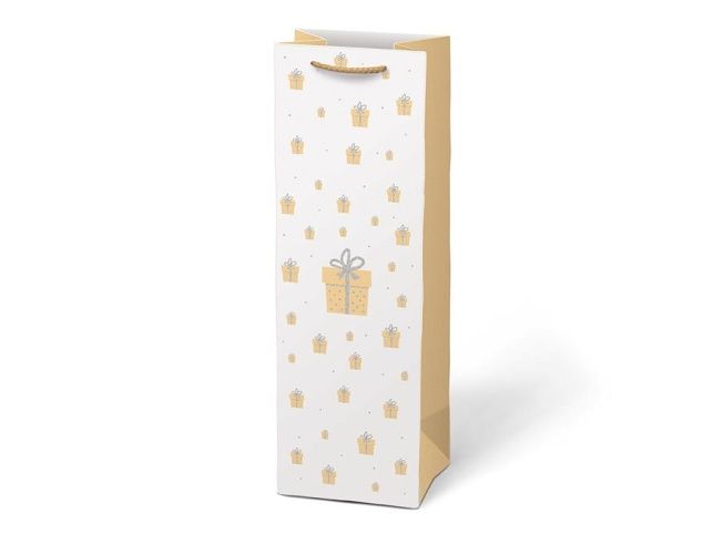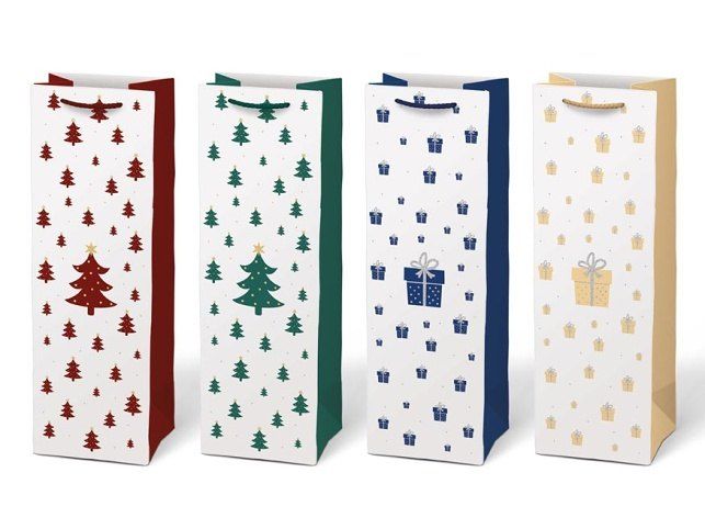 Vánoční dárková papírová taška T12 na víno nebo jinou lahvinku. Taška je opatřena pevným uchem pro snadné nošení. Pokud nemáte čas balit dárek do dárkového balícího papíru tak právě pro Vás máme široký výběr dárkových tašek. MOTIV: - vánoční stromeček - dárek Rozměr: 120 x 360 x 100 mm Uvedená cena je za 1 ks.