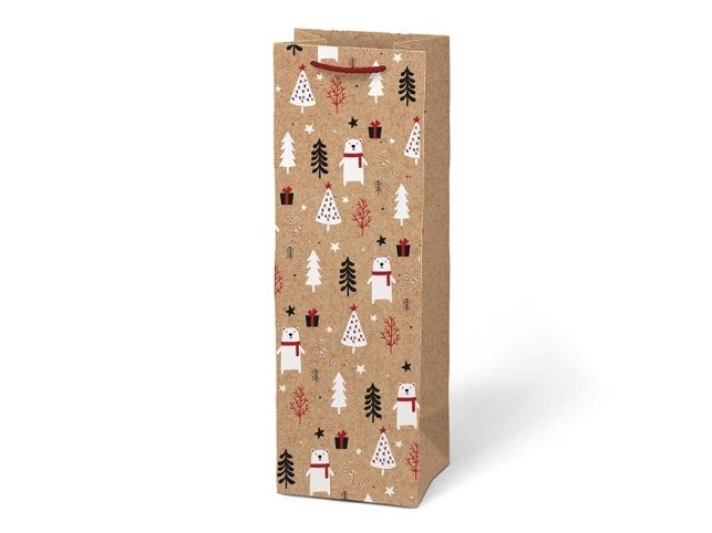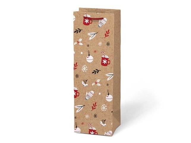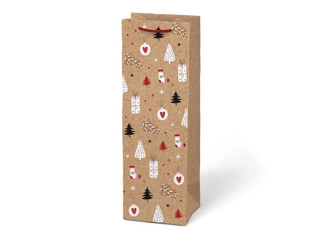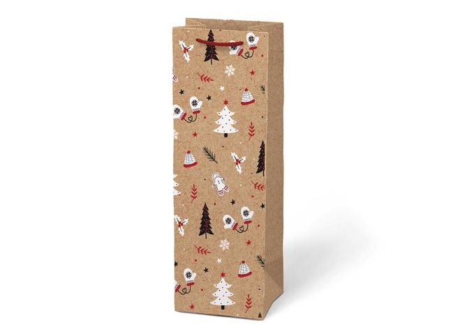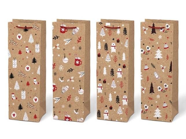Vánoční dárková papírová taška T12 na víno nebo jinou lahvinku. Taška je opatřena pevným uchem pro snadné nošení. Pokud nemáte čas balit dárek do dárkového balícího papíru tak právě pro Vás máme široký výběr dárkových tašek. Motiv: mix vánočních motivů Rozměr: 120 x 360 x 100 mm Uvedená cena je za 1 ks.