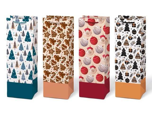 Vánoční dárková papírová taška T12 s vánočními motivy je dokonalým spojením elegance a praktičnosti. Taška je vhodná na balení všech druhů lahví. Je skutečně nepostradatelným pomocníkem, když se balení dárku do klasického balicího papíru zdá být příliš obtížné. Její robustní ucha zajišťují pohodlné a bezpečné přenášení. Rozměr: 120 x 360 x 100 mm Motiv: vánoční stromečky, perníčky, vánoční koule, mix vánoční motivů Uvedená cena je za 1 ks.