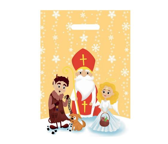 Bílá igelitová taška s průhmatem- potisk na přední straně- zadní strana bílá- ideální na mikulášskou nadílku pro děti- materiál: LDPE- rozměr: 25 x 35 x 8cm- tloušťka: 30mic- složené dno- balení: odtrhávací blok