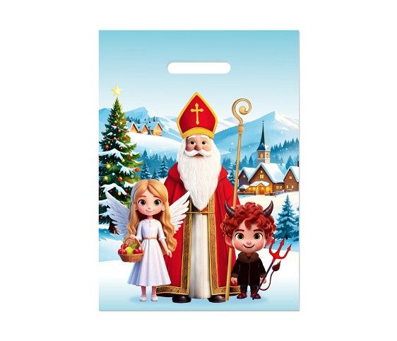 Bílá igelitová taška s průhmatem- potisk na přední straně- zadní strana bílá- ideální na mikulášskou nadílku pro děti- materiál: LDPE- rozměr: 25 x 35 x 8cm- tloušťka: 30mic- složené dno- balení: odtrhávací blok